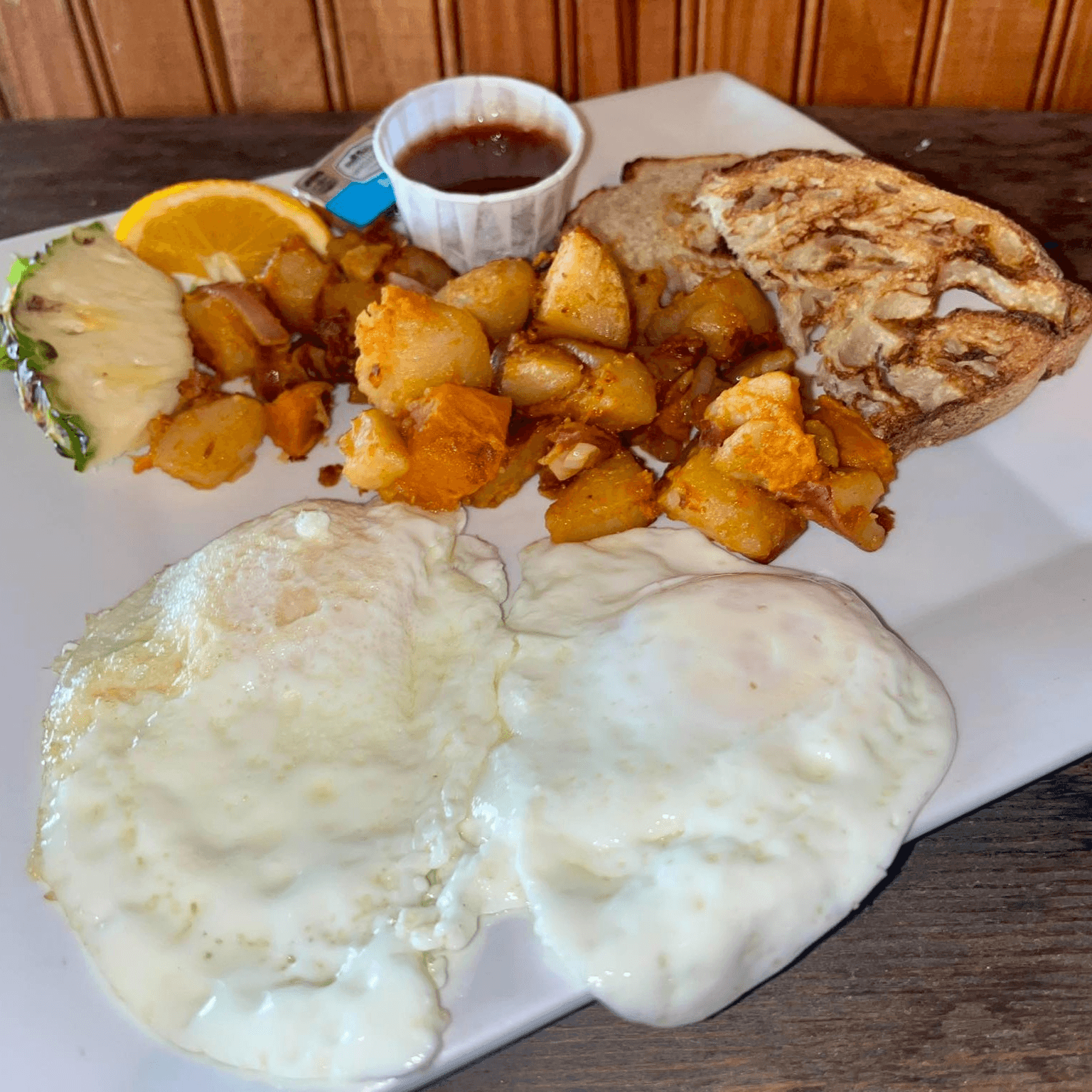 2 eggs cooked to order served with home fries and your choice of toast (wheat, rye, sourdough)