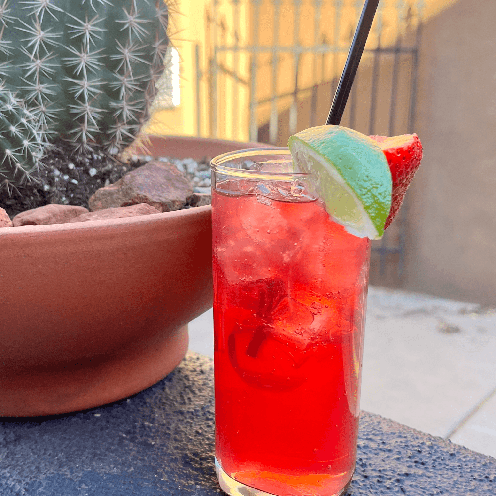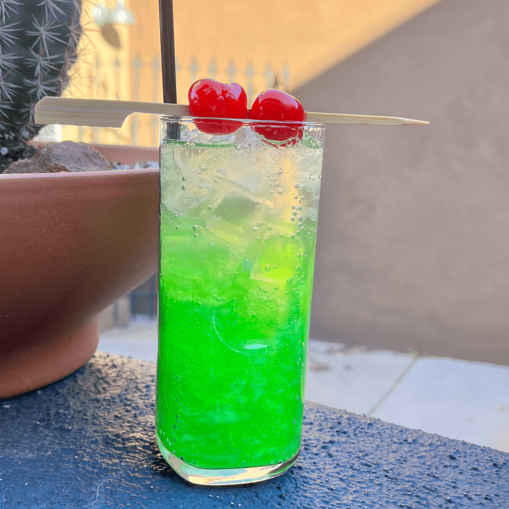 Green apple syrup, sprite, over ice & topped with maraschino cherries